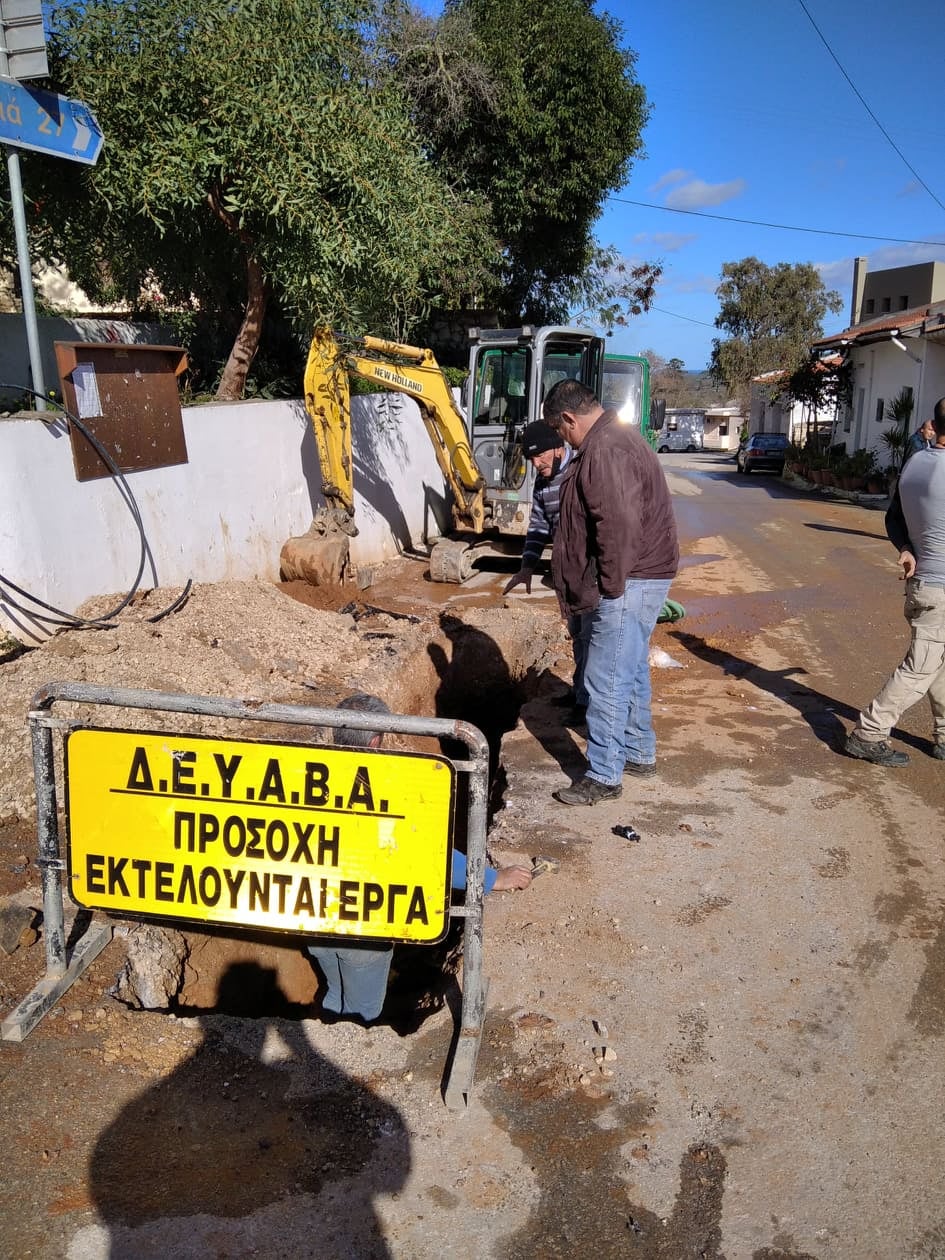 Αποκατάσταση ζημιάς αγωγού ύδρευσης στις Βουκολιές
